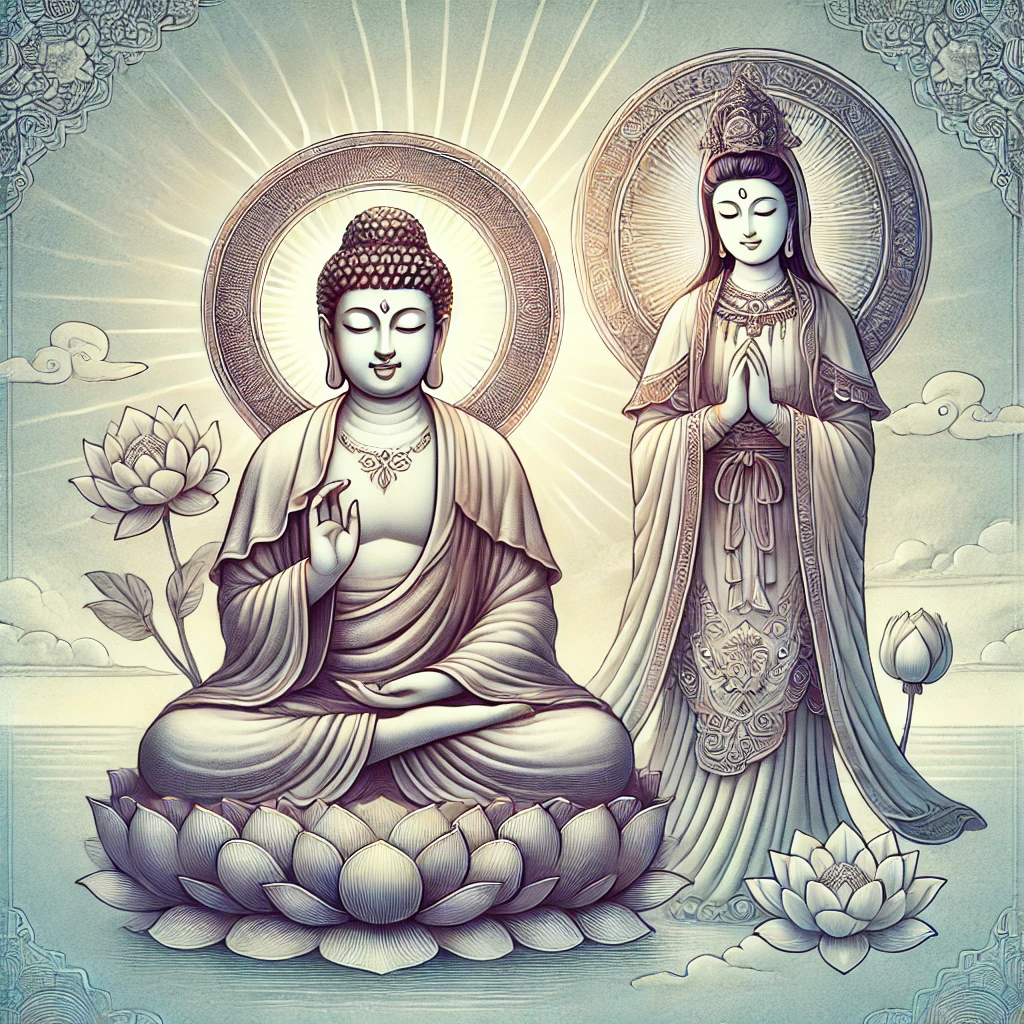 아미타불의 무한한 자비와 지혜, 그리고 관세음보살의 깊은 자비와 보살핌을 믿고 의지함으로써,