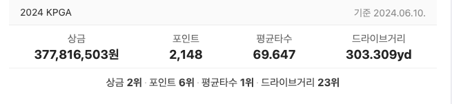 • 최근 우승: 이번 KPGA 선수권대회 우승으로 통산 3승째