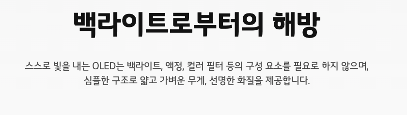 • OLED는 각 픽셀이 스스로 빛을 내는 자발광형 디스플레이입니다.